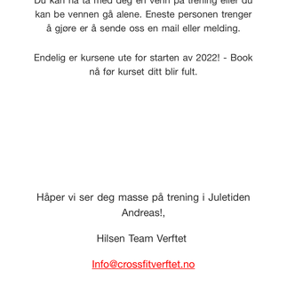 Alle har fått mail i dag med litt informasjon angående hvordan det er nå på trening, at du kan bringe med en venn på trening helt gratis og ikke minst kurs for 2022 er nå åpen for booking =)). Bildene ikke helt i rekkefølge, men noen lunde.