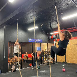 Neste del var da en Team økt, med høy skill gymnastics kombinert med knebøy; Rope climbs, hand stand pushups og goblet squats.
