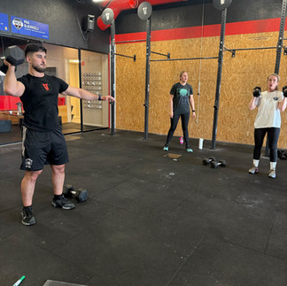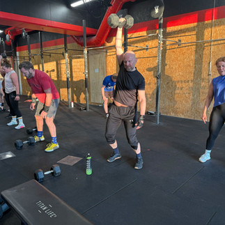 Alex, Le francais 🇫🇷, viste fin form på push press i dag. Brukte 15 kg i dag og kunne fortelle at for et år siden kunne han såvidt bevge 10kg dumbbells. HAn har hatt så mye fremgang at T-skjortene begynner å bli for trange til musklene hans 😎
