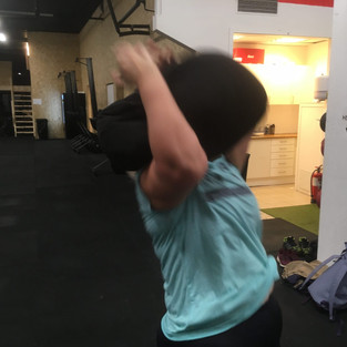 Birgitte var glad. Syntes det var deilig å svette og bli veldig veldig sliten. Birgitte syntes økta var god. Mone syntes sandbagen var tung, men undertegnede tok henne i et fagert smil når hun kjente syren og verken som hun vet gjør godt for musklene.