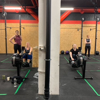 Before you got to throw the wallball around today, you had to pay your dues on the rowing machine. The buy-in was a 6k, 5k, or 4.4k row and that is not an easy distance. Luckily you could split this up with your partner and take about 7 or 8 intervals. Now 7 intervals sound a lot easier to my ears than a 6k row. Once you got it done it wasn't so bad, and #mostfunwins so you might have even smiled while you were at it.